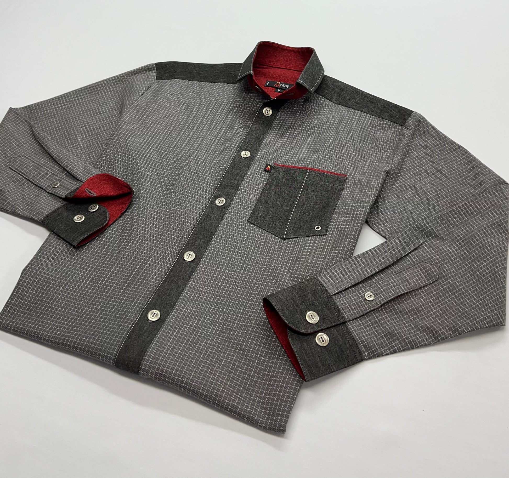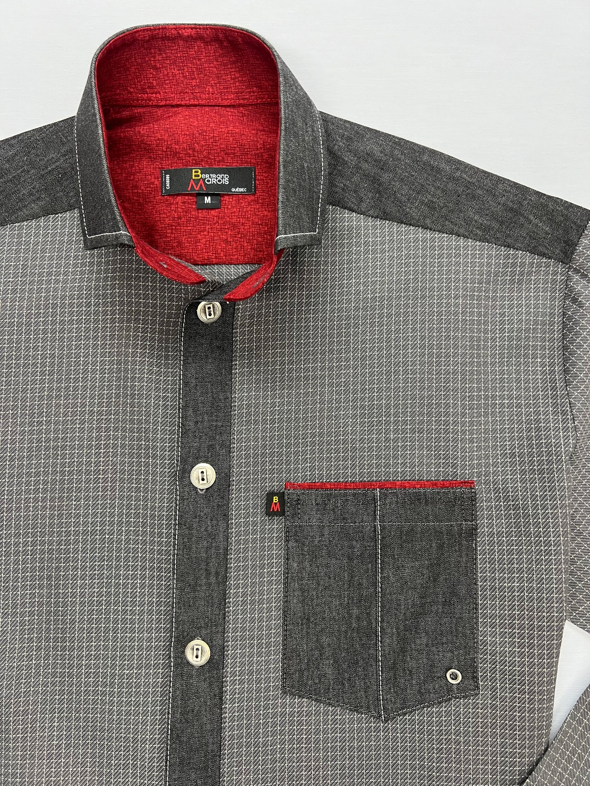 Long-sleeve version of the Méli-Mélo shirt. (Grey and red)