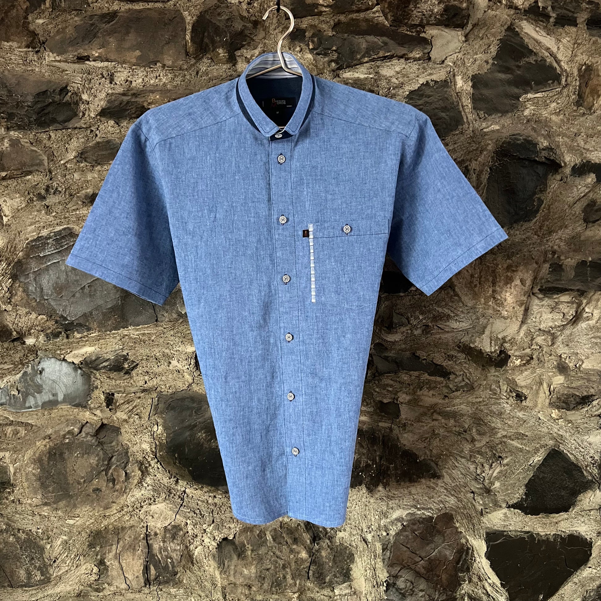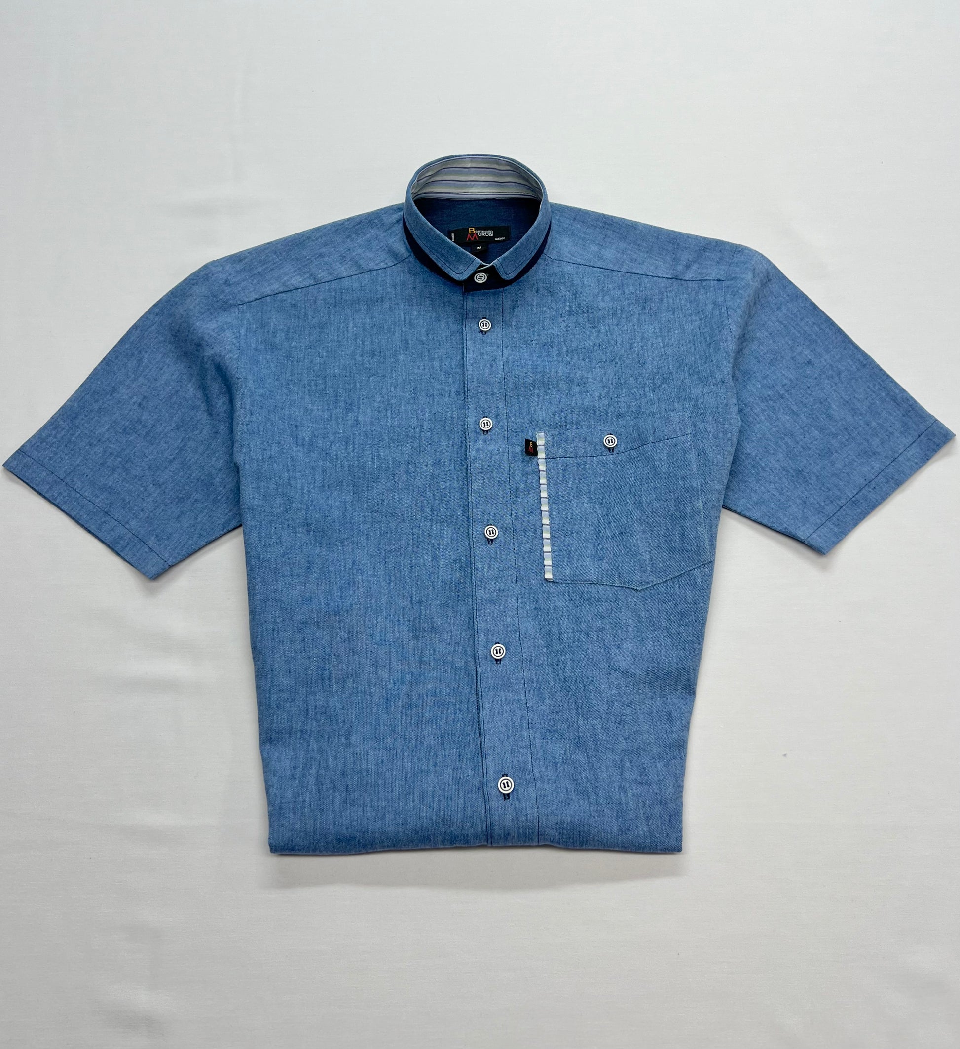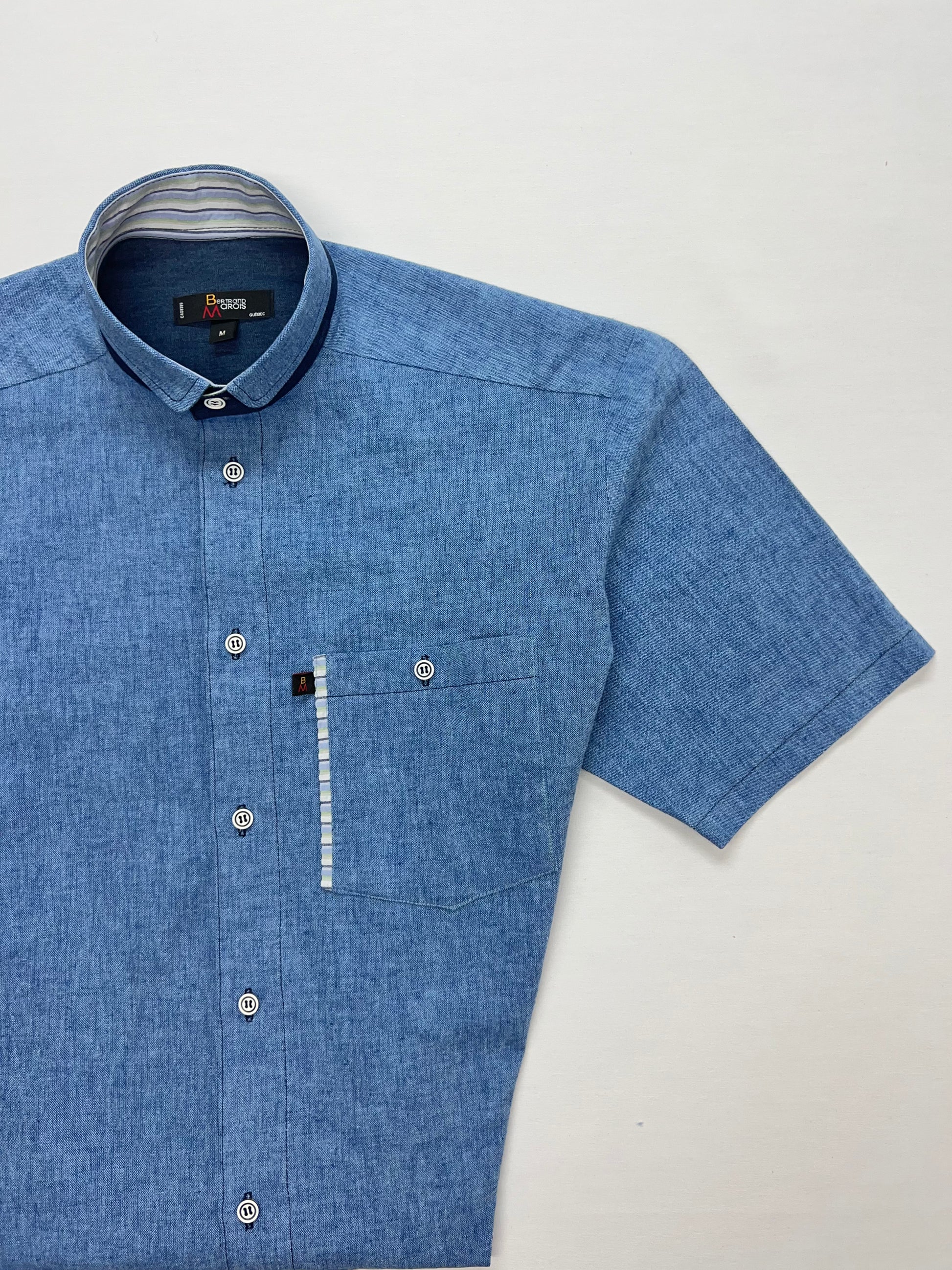 Chemise bleu delphinium à l'allure classique et décontractée.